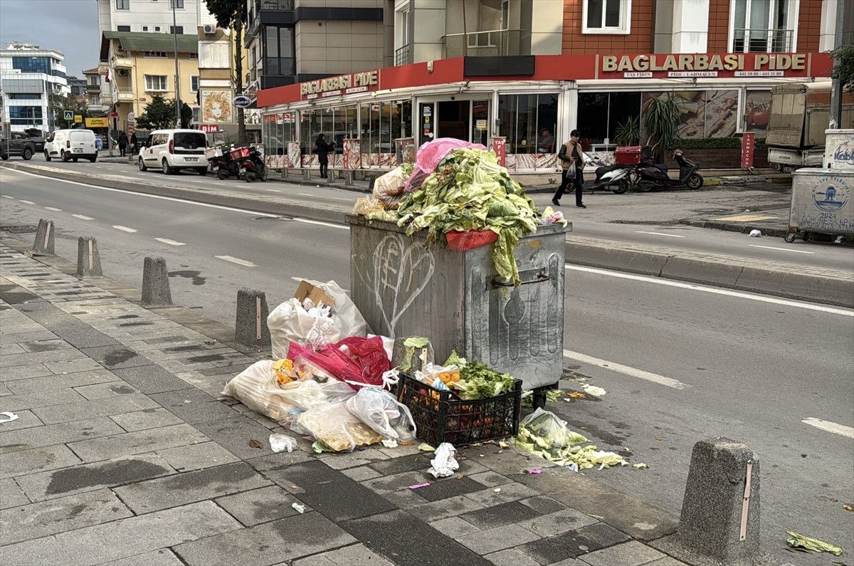 İlçedeki Kışlalı Caddesi’nde pazartesi günleri kurulan semt pazarının çöpleri, işçilerin çalışmaması nedeniyle yolda kaldı. Konteynerlerin çöple dolup taştığı görüldü.