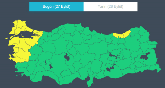 Meteoroloji, fırtına ve kuvvetli yağış beklenen Balıkesir, Bursa, Çanakkale, Edirne, İstanbul, İzmir, Kırklareli, Kocaeli, Manisa, Rize, Tekirdağ, Trabzon ve Yalova için sarı kodlu uyarı yayımladı. Vatandaşların dikkatli ve tedbirli olması istendi.