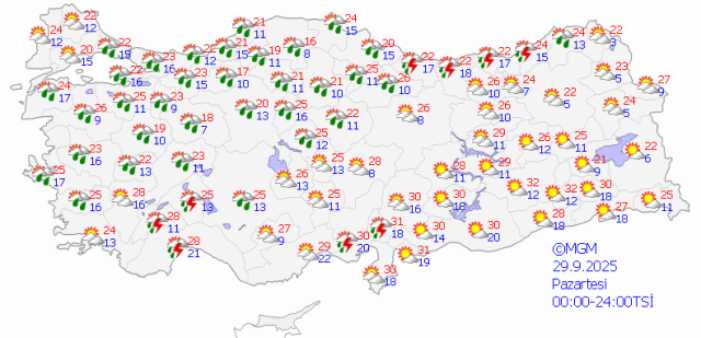 29 EYLÜL PAZARTESİ HAVA DURUMU
