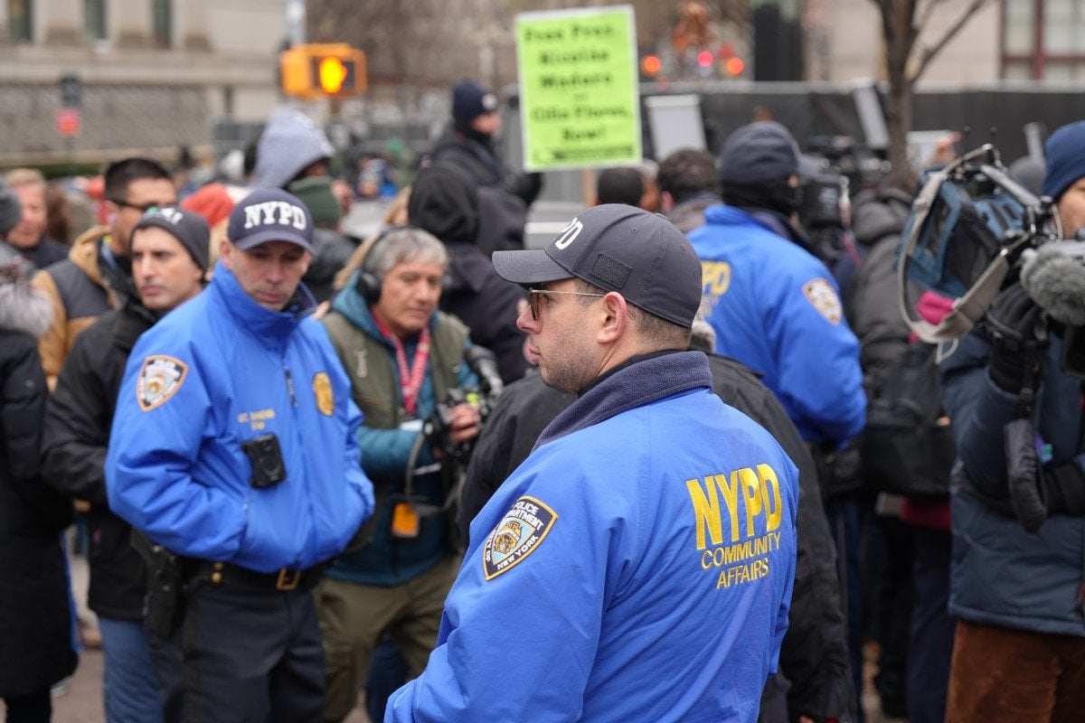 Protestoların başlamasıyla birlikte mahkeme çevresinde güvenlik önlemleri arttırıldı. New York Polis Departmanı (NYPD), duruşmayı barışçıl bir şekilde sonuçlandırmak için ek tedbirler aldı. Bariyerler genişletilirken, bölgede bulunan çok sayıda polis ekibi protestocuları izledi.